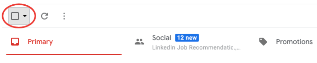 - Click on the “Box” at the top left-hand corner of your inbox list to select all the emails