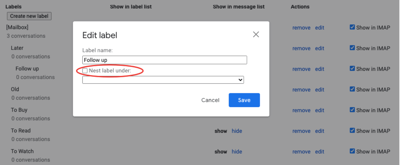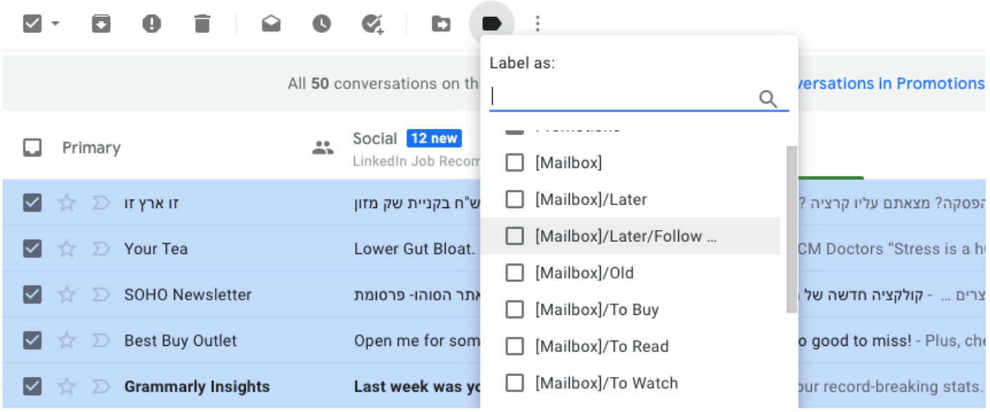 If you have a lot of folders, it can become frustrating to constantly sift through them when you’re trying to tag each email quickly. In that case, Gmail allows you to hide folders from your dropdown menu. What this does is hide the folders from being selected instead of deleting them.