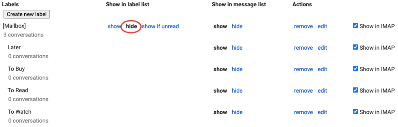 How to hide a new folder in Gmail