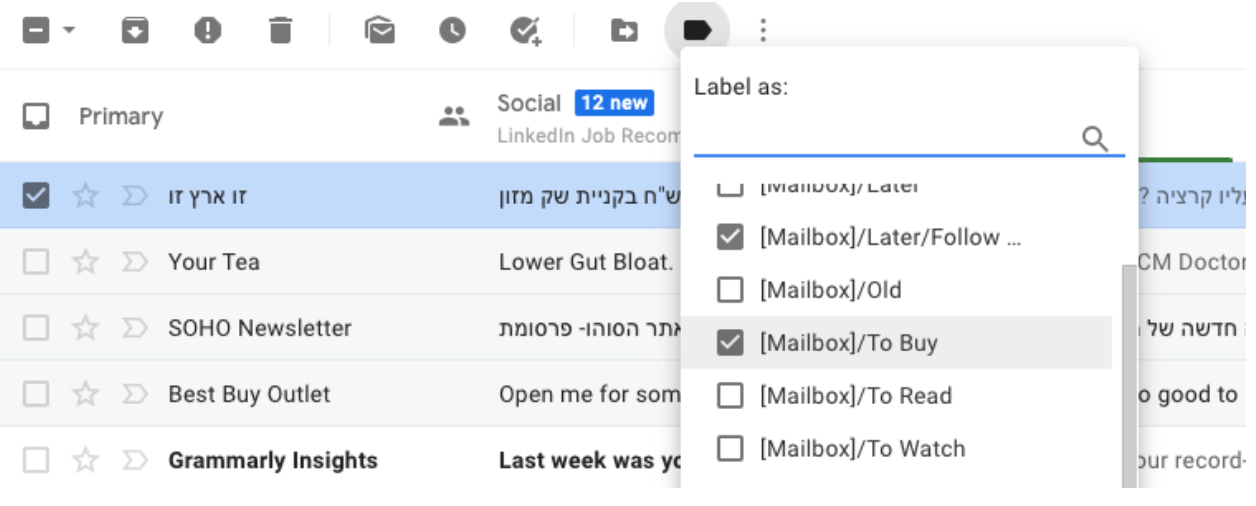 - Click on the “Folder icon” at the top of your inbox