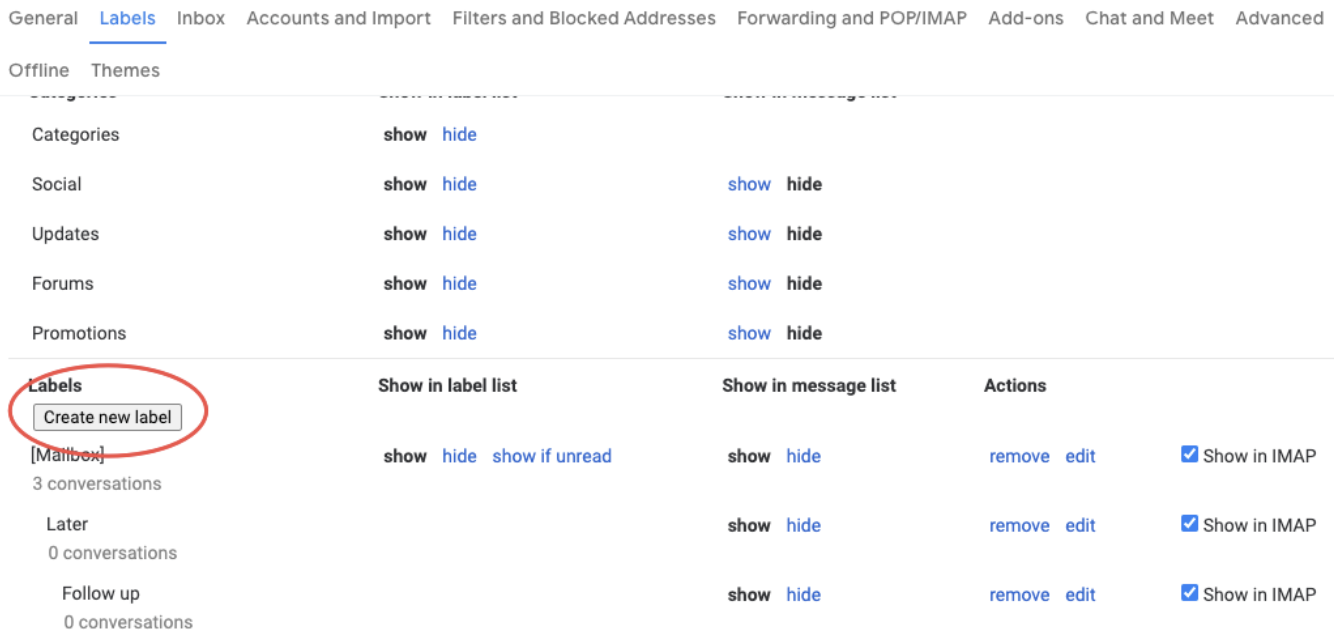 Create new folders for Gmail