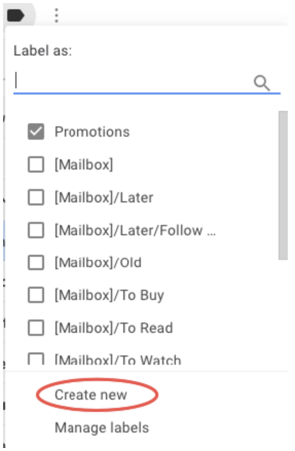 - Click on “Create new” button to create folders for gmail