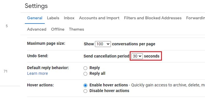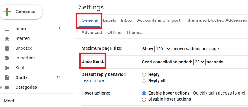 By default, Gmail allows you to use the Undo send feature within 5 seconds. However, you can increase this time window to give yourself more time to recall your emails.