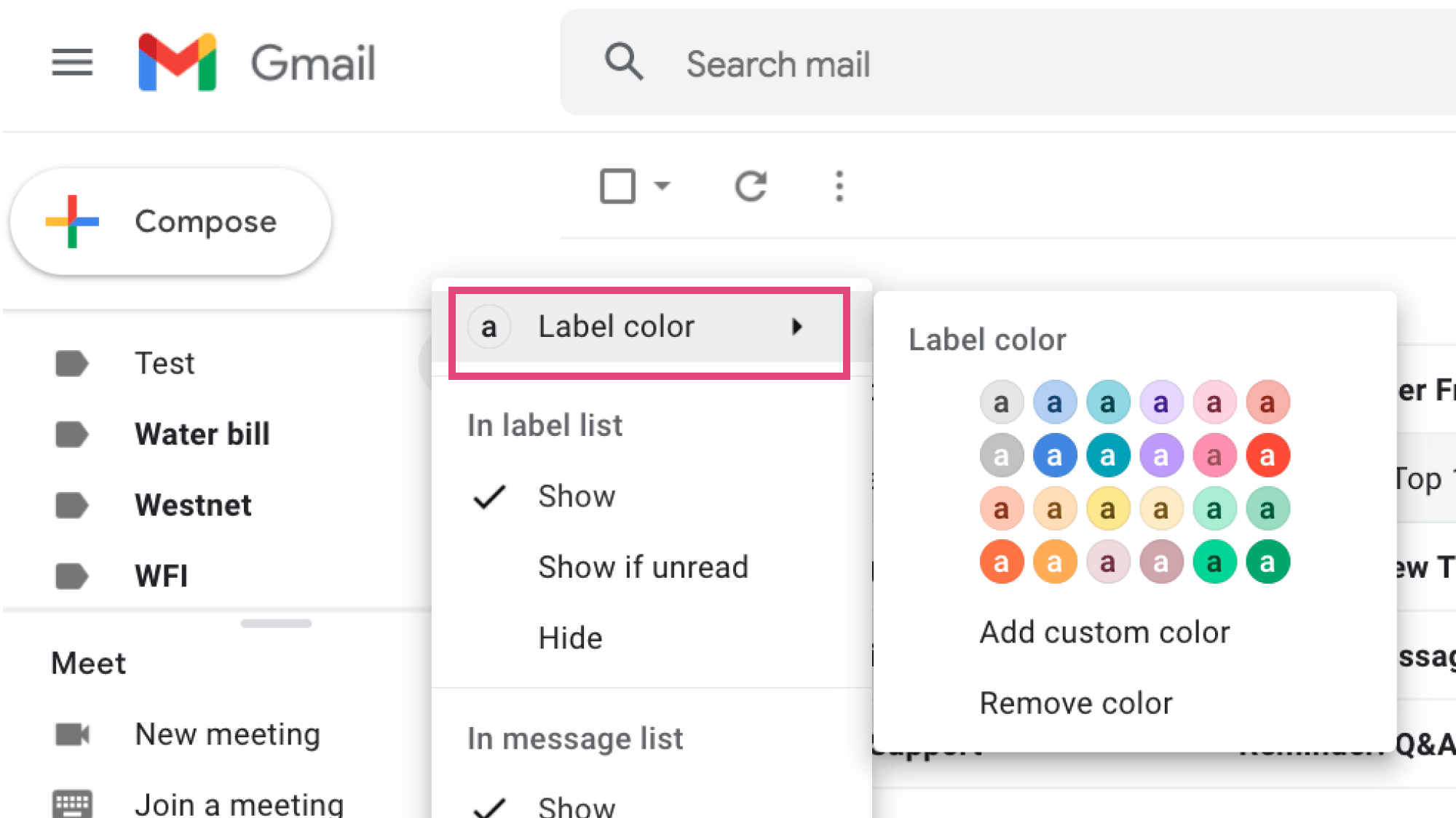 Step 1: Click on the three-dotted lines close to the label and choose “Label color”