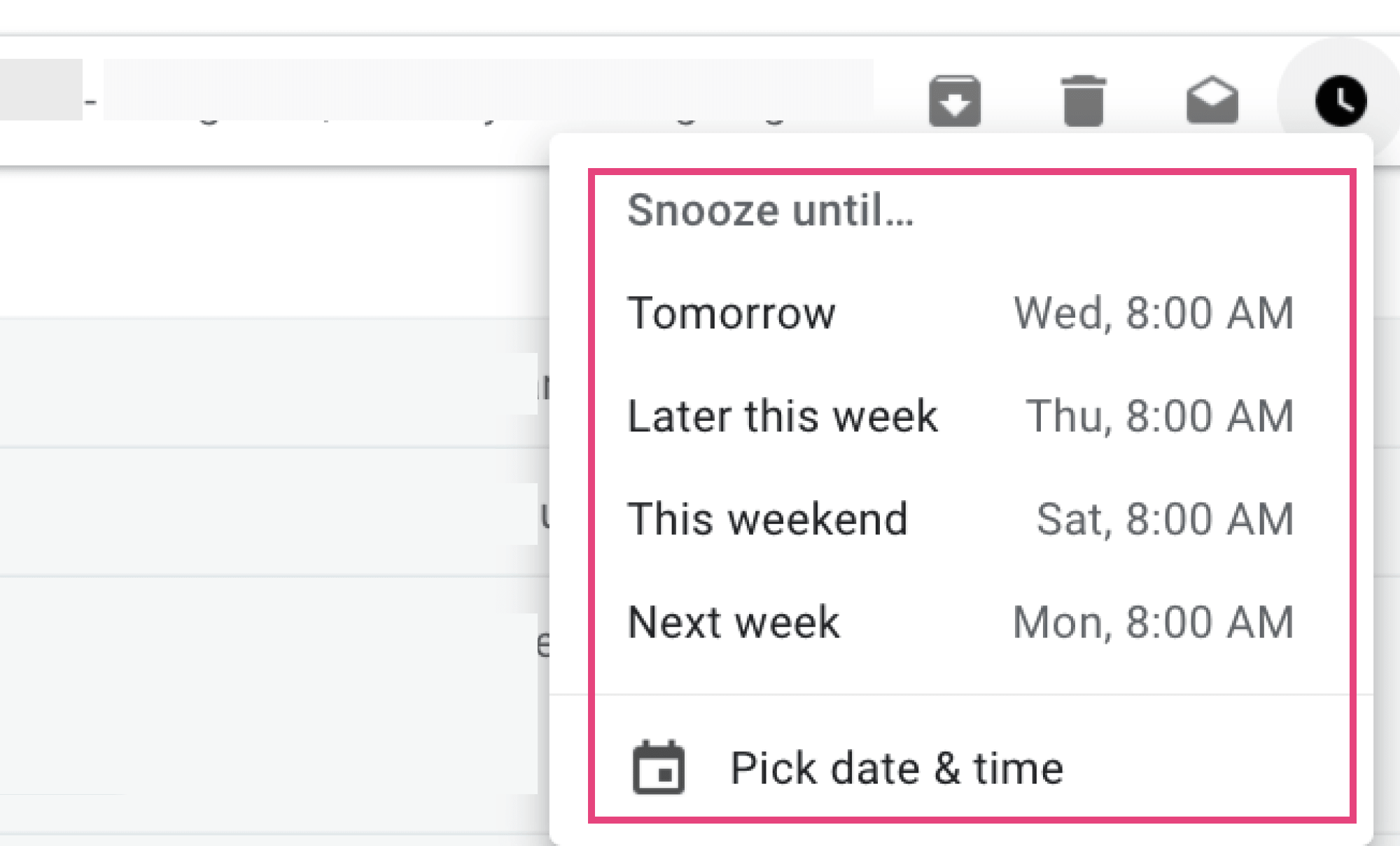 There are some emails that you can comfortably check at a later time or even by date. Snoozing these emails allows you to focus on your work without unnecessary disruptions.