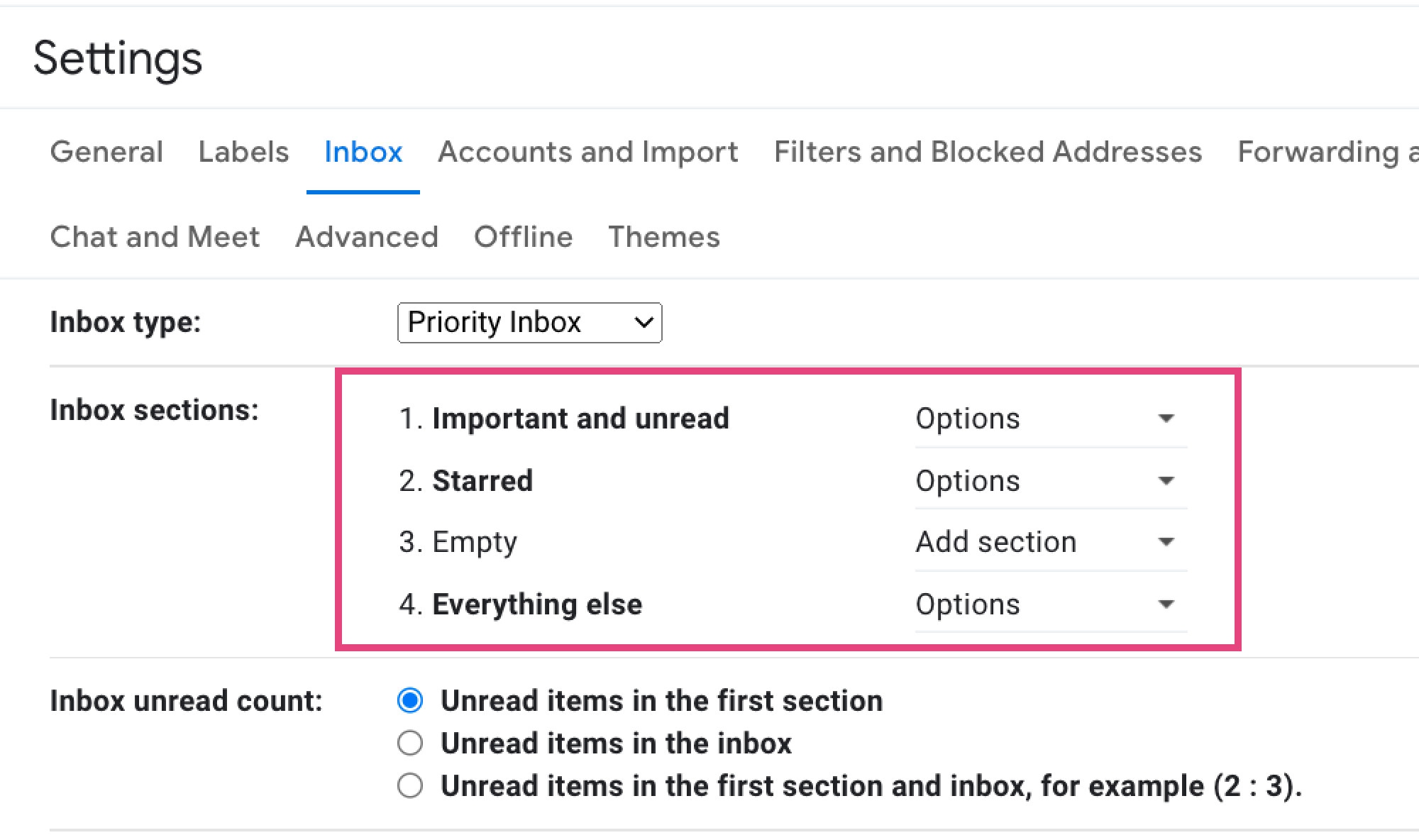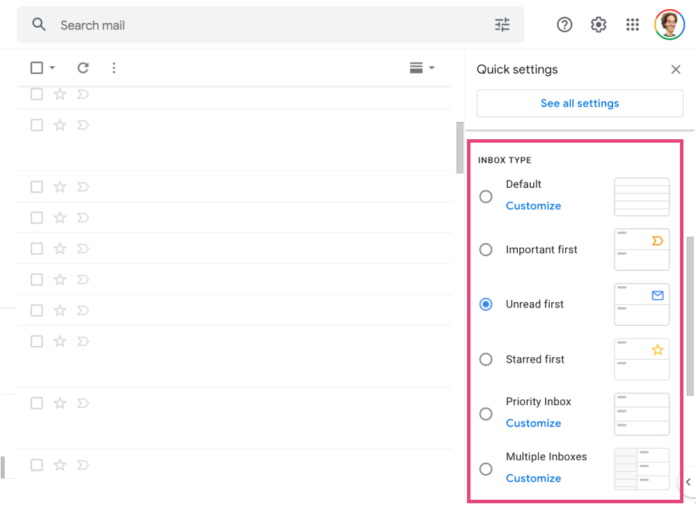 Apart from the options to determine which content comes first in your Inbox, you can customize it to suit your specific needs. A customized Inbox increases your productivity because you get to refine it to the point where you can work faster than before.