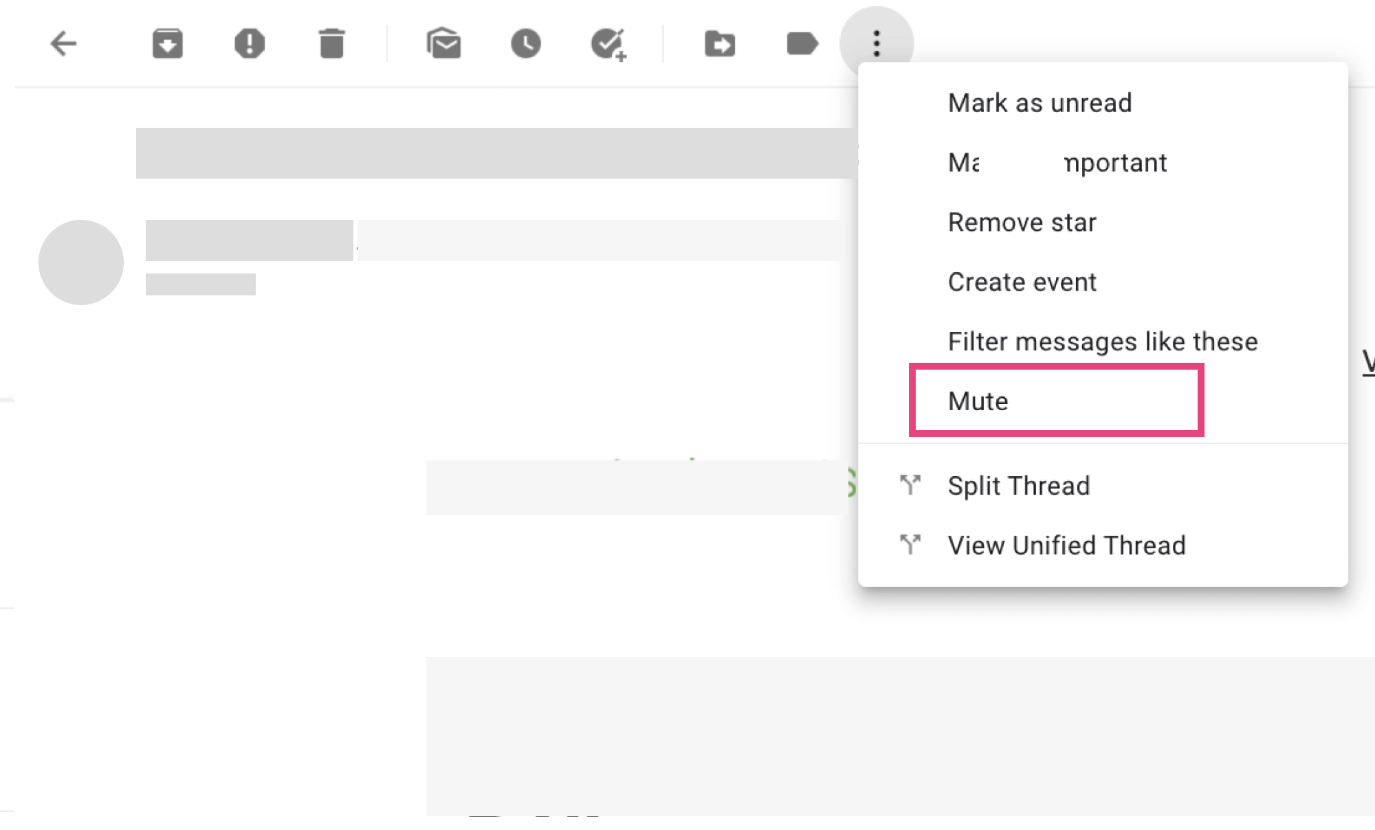 You could mute conversations in Gmail to avoid seeing further messages in your Inbox. These emails remain in your account, and you can search for them when needed. However, they no longer disrupt you from other impo Mutertant work.