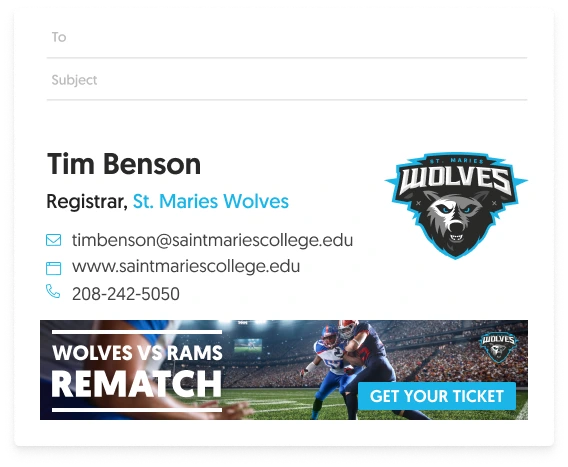 Design and set up university-wide signatures in minutes using a central dashboard. WiseStamp doesn’t require any technical knowledge or IT assistance to manage. Compatible with Google Workspace or Office 365.