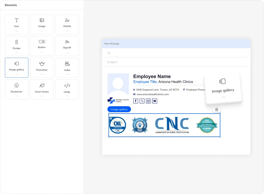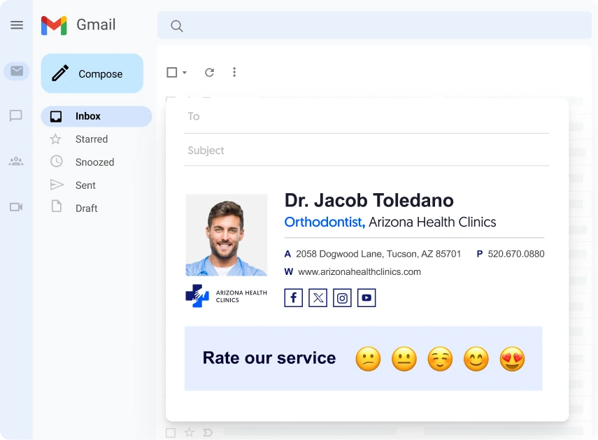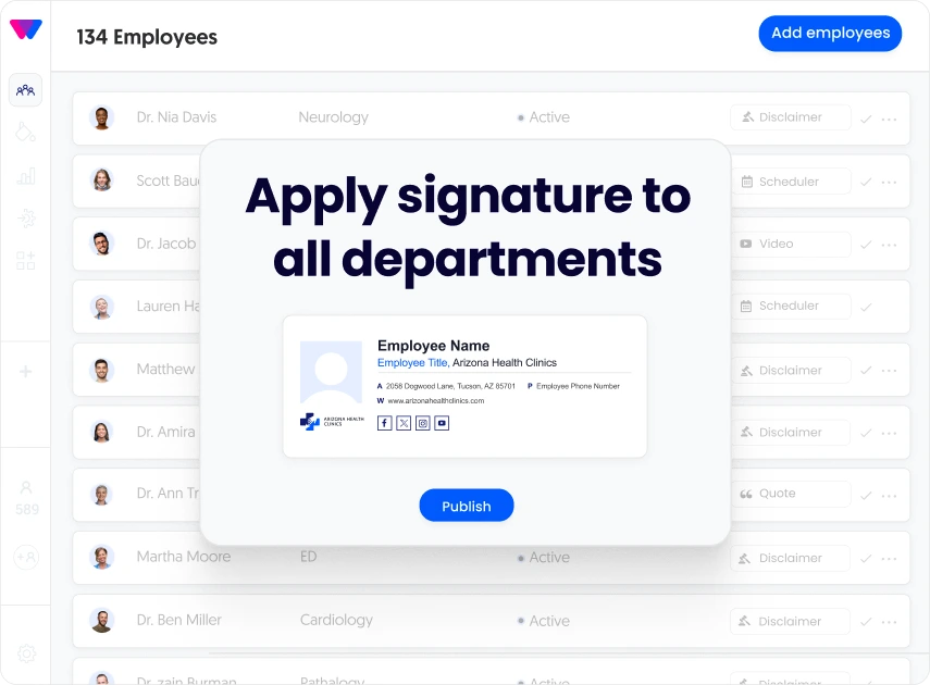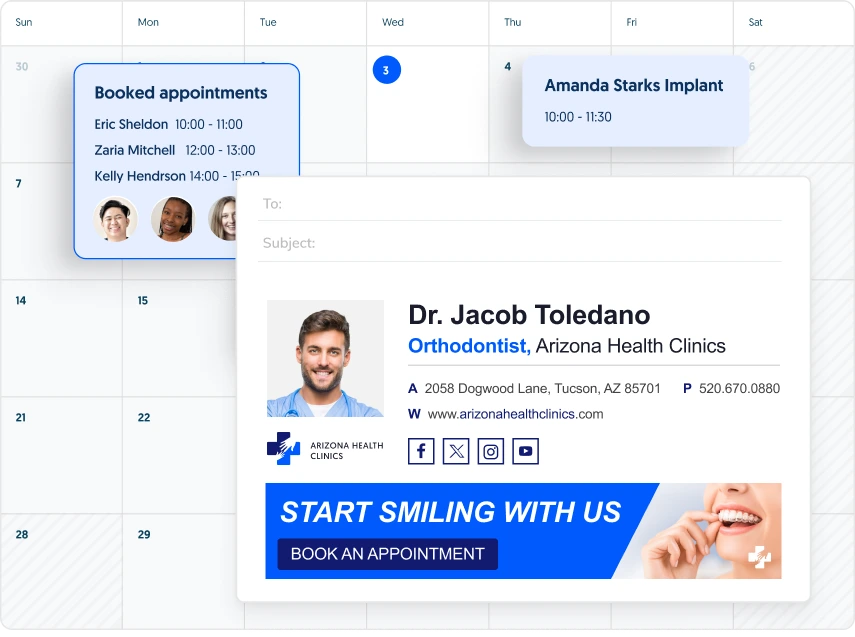 Your staff members’ email signatures are a powerful channel for direct interactions with your patients. Use them to effortlessly engage, inform, and establish strong human connections in every email you send.