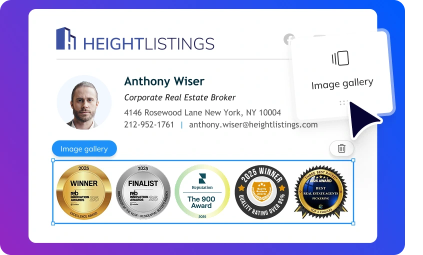 Your emails are your most powerful marketing channel. Agents send thousands of emails to interact with clients daily. Increase brand recognition by putting your logo front and center to help clients recognize your brand alongside the agent.
